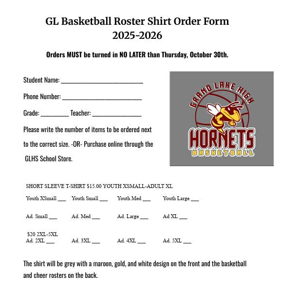GLHS 2025-2026 Basketball Roster Shirts are now on sale! 2025-2026 Basketball Roster shirt order form Published October 6, 2025 Print